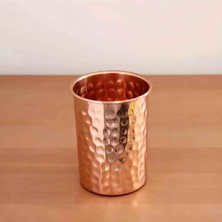 Vaso de Cobre para Beber, Forma Cilíndrica Lisa, Boca Ancha, Base Cónica, Recipiente de Agua Tradicional Hecho a Mano, Elegante