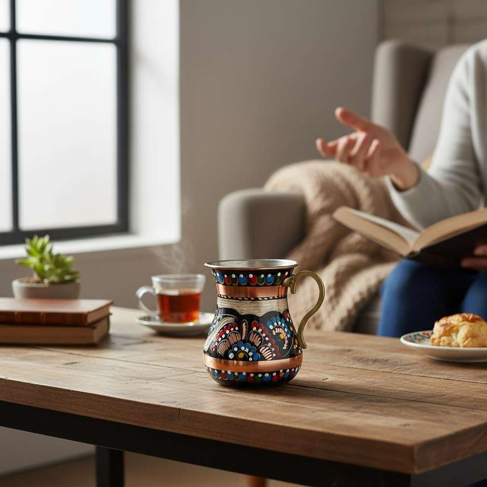 Jarra y Taza de Cobre Esmaltado de Diseño Moderno, Inspiradas en Gbekli Tepe, con Asa, para Regalos y Uso en Restaurantes