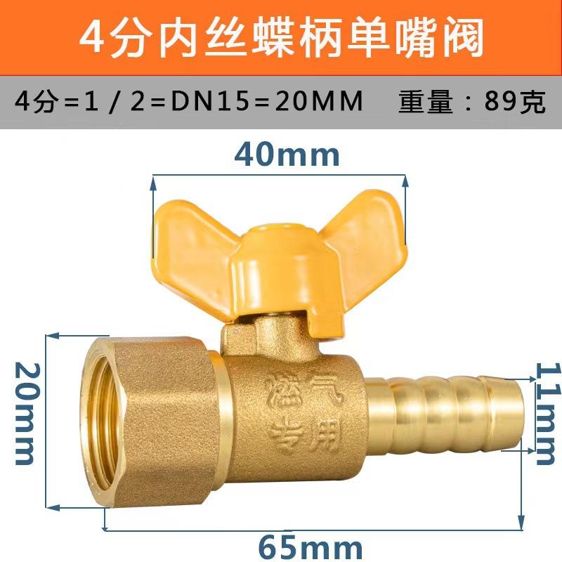 Válvula de gas con rosca interna de cobre de 4 puntos.