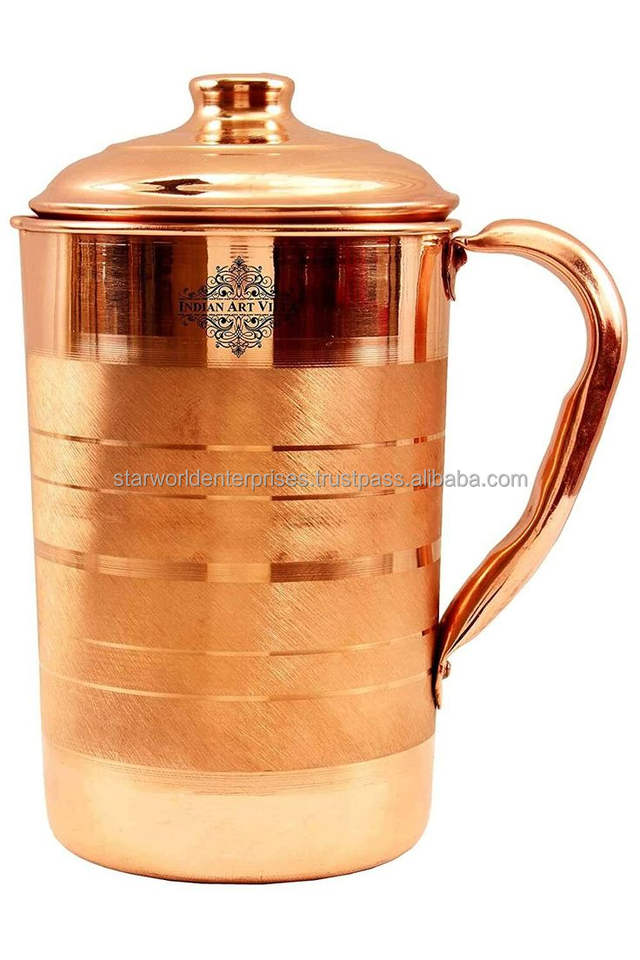 Jarra de Agua de Cobre Hecha a Mano con Tapa para Uso Doméstico y Hotelero Disponible a un Precio Accesible