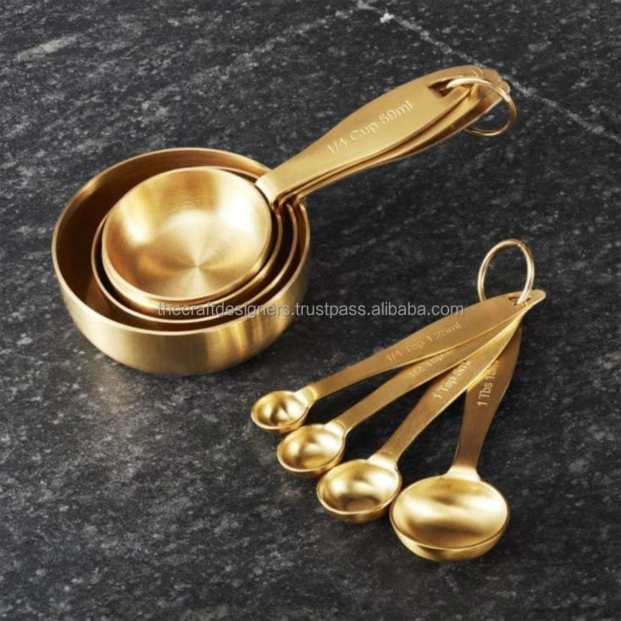 Juego de 4 Tazas Medidoras de Acero Inoxidable con Acabado PVD Cobre y Asas de Madera, Fácil Agarre, Aptas para Lavavajillas