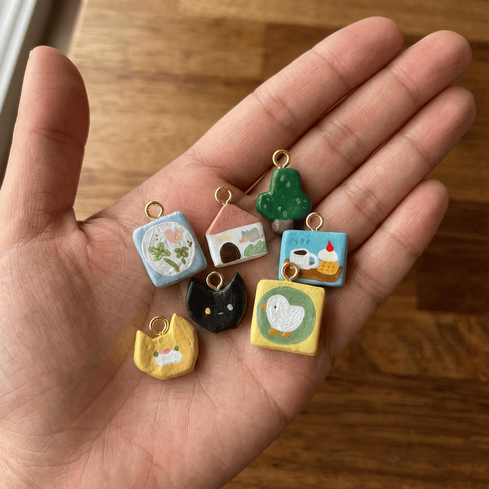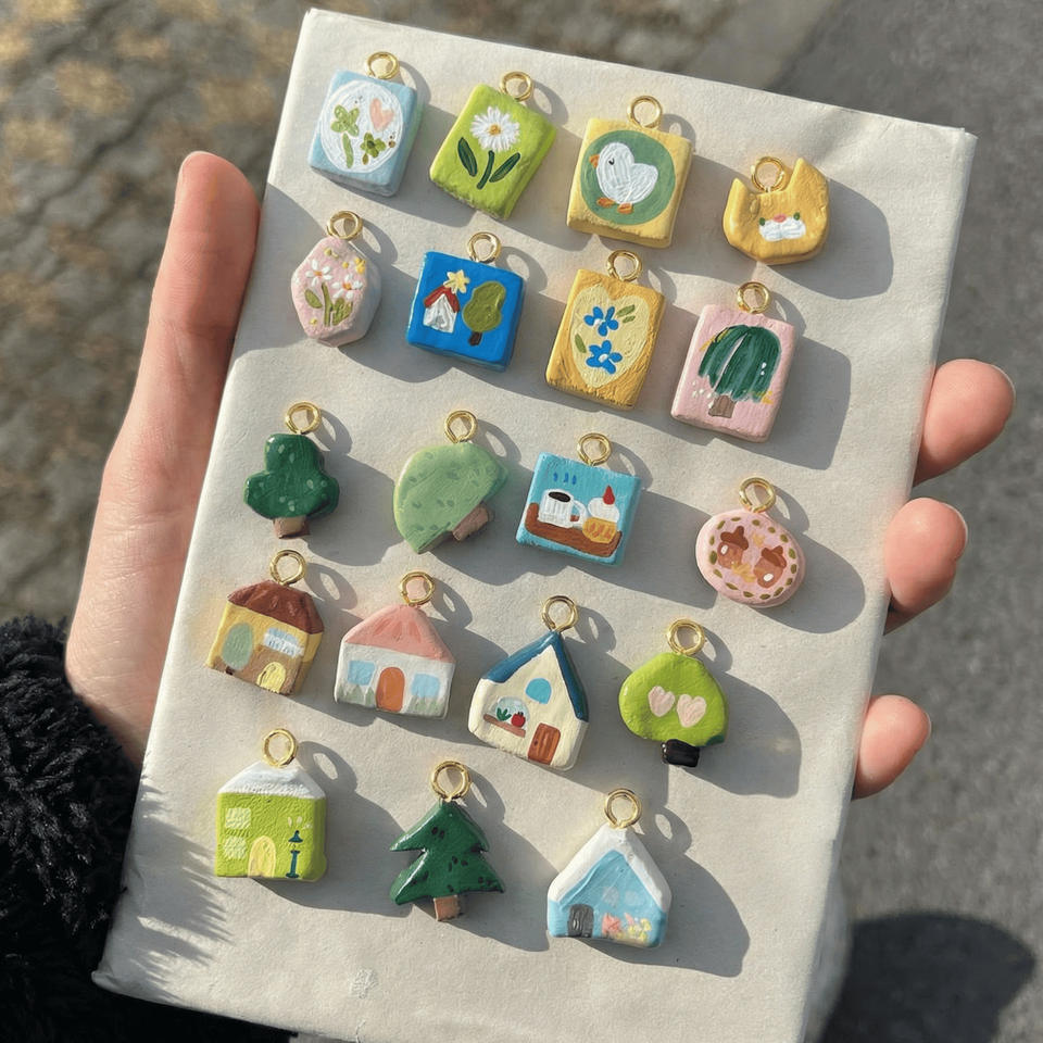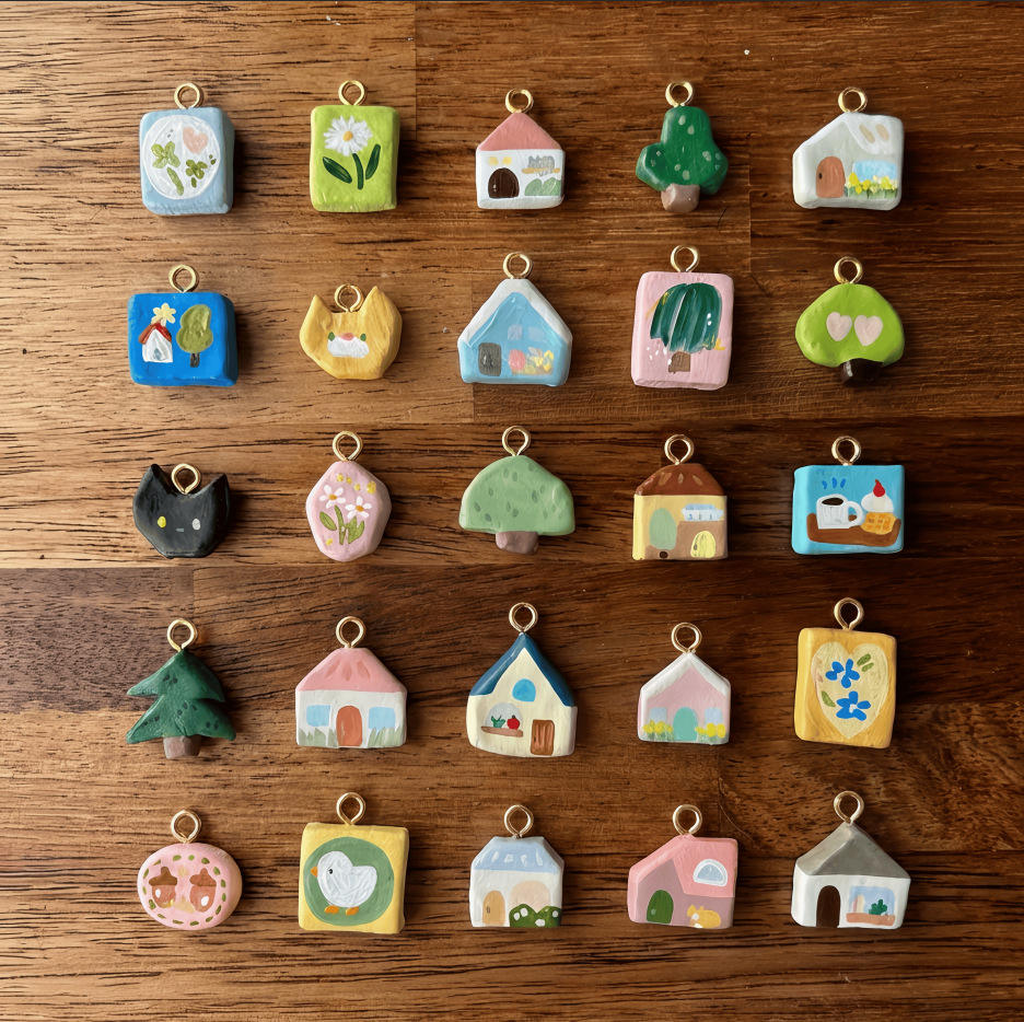 Colgante de cobre pintado con diseño de casa, árbol y flor, bonito dije de margarita, llavero con mosquetón, colgante para mascota, joyería de moda encantadora