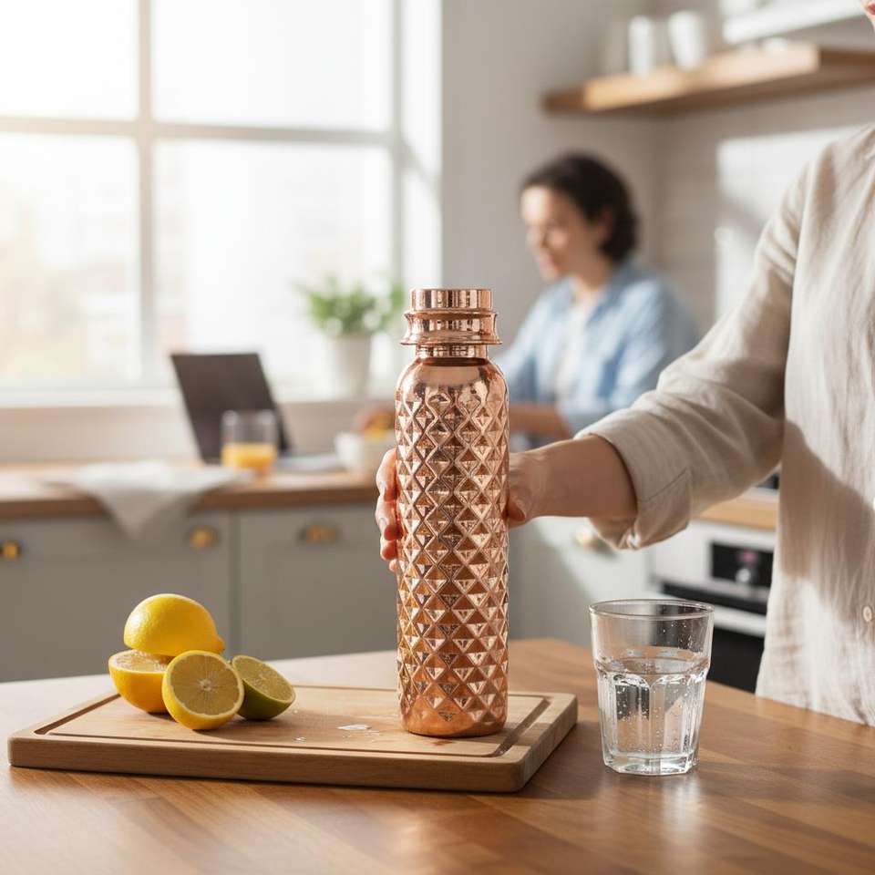 Botella Piramidal Segura y Duradera con Diseño Único, Superficie Grabada, Tapa de Rosca, 25 cm de Altura