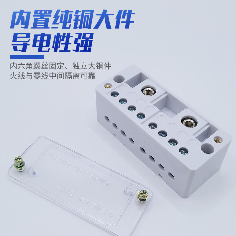 Bloque de terminales de cobre con tornillos, 220V, conector de cableado de montaje en superficie para conexión paralela de cable neutro y fase monofásico.