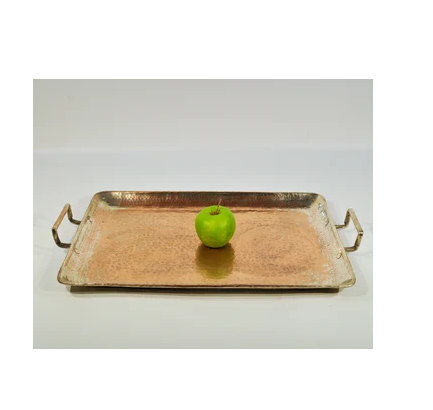 Bandeja de cobre rectangular/redonda con asa, diseño brillante, bandeja de cobre para almacenamiento, precio superior