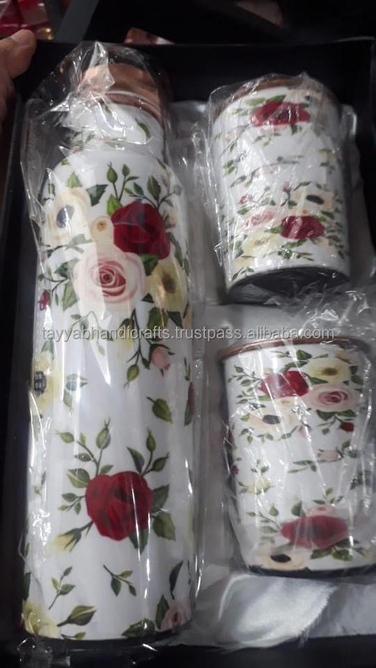 Botella de agua de cobre Mesa decorativa Botella de agua de cobre Suministros de cocina Botella de cobre impresa de la India