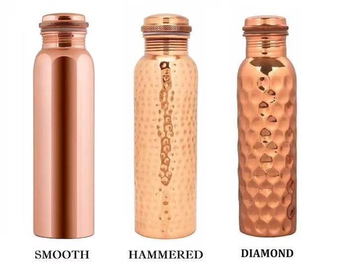 Set de Regalo de Botella de Agua de Cobre, Acabado Martillado de Metal Puro, Frasco Ayurvédico Reutilizable y Ecológico