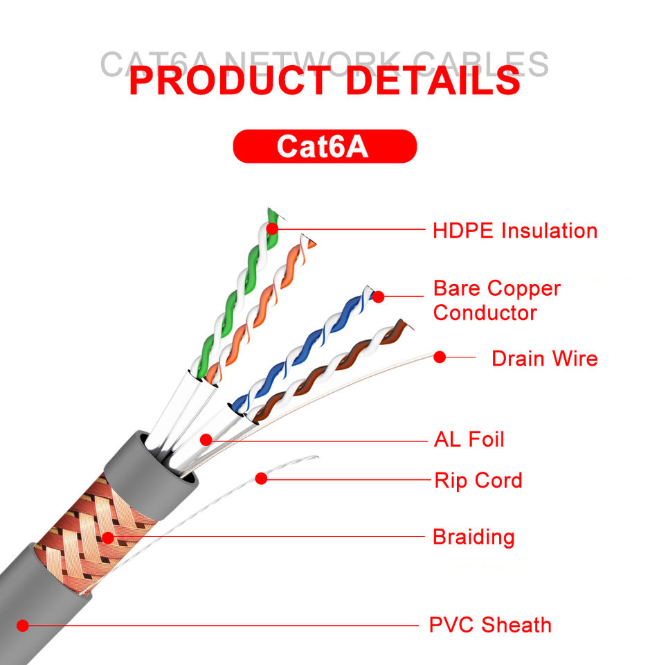 Durable CAT6A SFTP Cable de red de par trenzado 100MHz Ancho de banda Cables de comunicación de transferencia de datos confiables