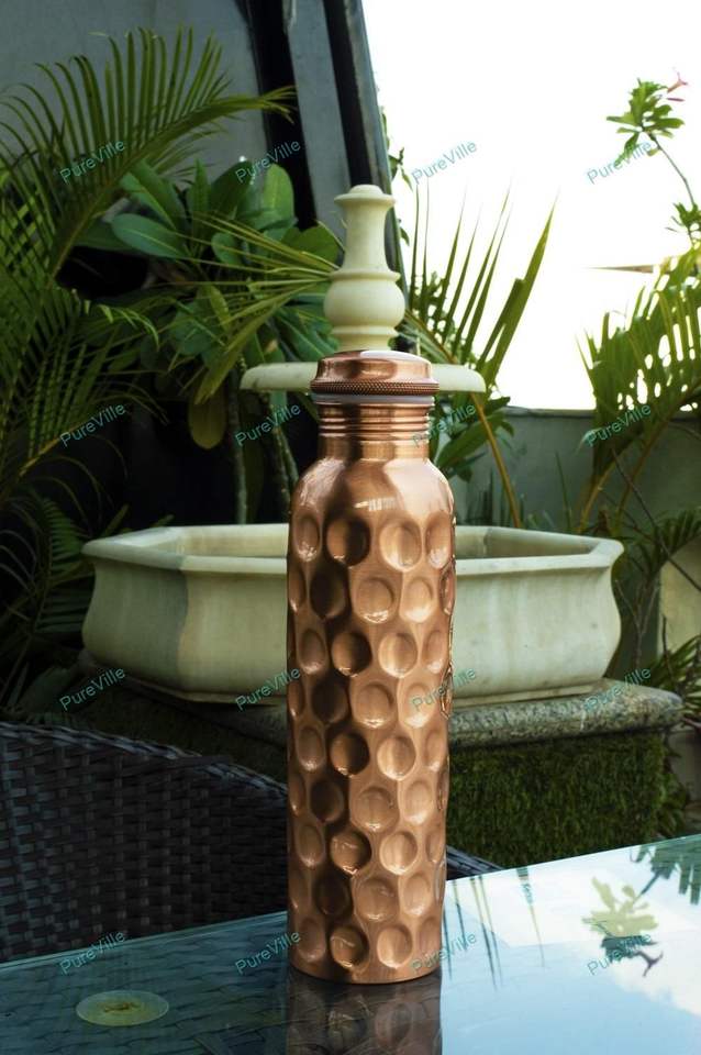 Botella de cobre diseñada para una sensación refrescante al beber, que mejora la hidratación diaria con una experiencia de tacto frío natural.