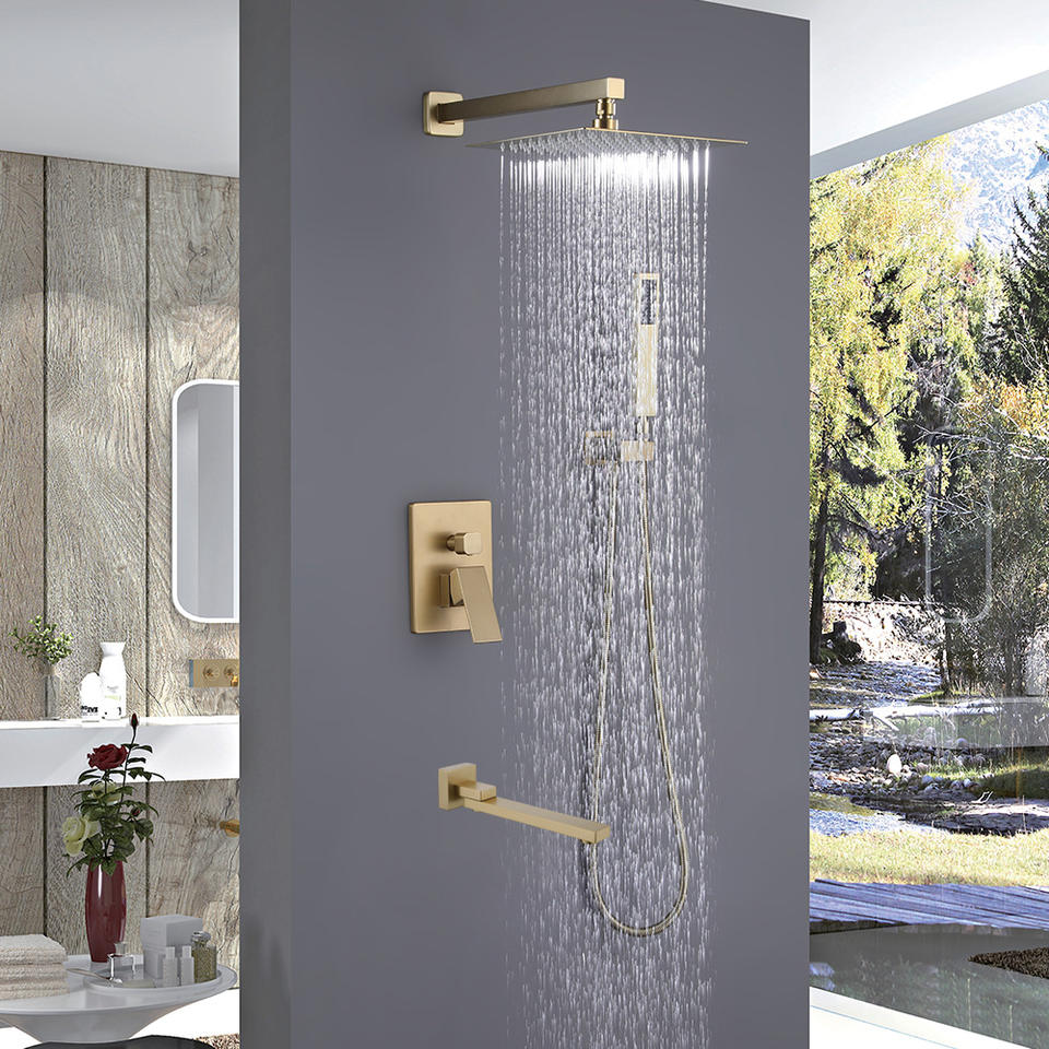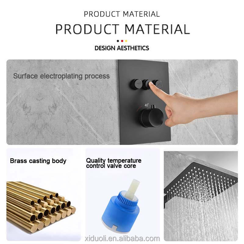 Cabezal de ducha oculto cuadrado de cobre Estilo Cascada fría y caliente agua abajo cabezal de ducha montado en la pared aumento de presión