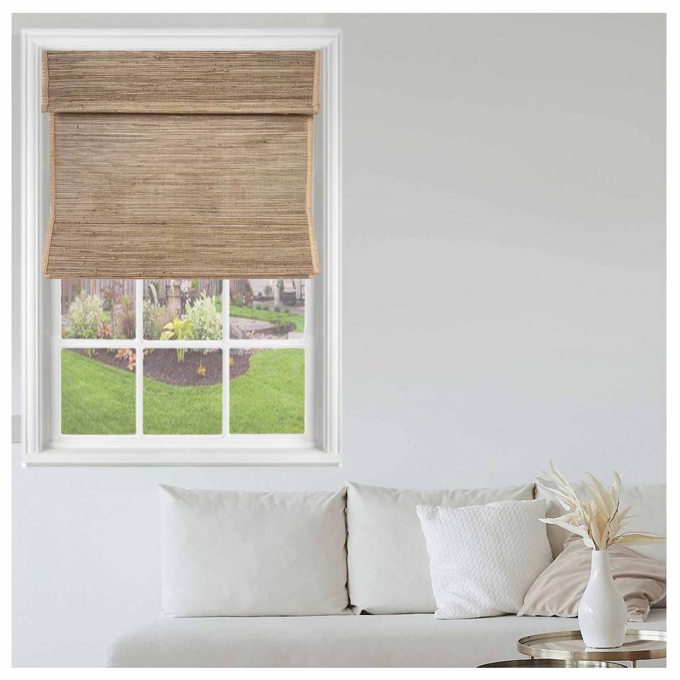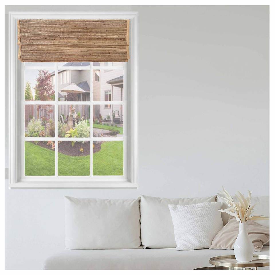 Persianas Romanas Inalámbricas Integradas de Diseño Natural Sencillo, Horizontales, de Alta Calidad, Ecológicas, de Bambú/Rami/Lino, para Ventanas Francesas