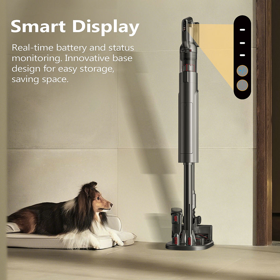 Aspiradora Inalámbrica Tipo Ciclónica con Filtro HEPA, Estación de Recolección de Polvo con Autovaciado, Bolsa de Polvo Grande de 600 ml, Base Recargable