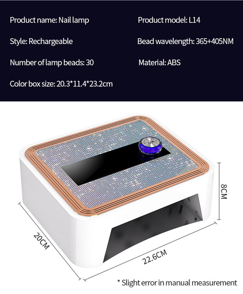 Lámpara de uñas inalámbrica, luz LED UV recargable, secador de uñas rápido con diamantes de imitación brillantes y temporizador 0-120S para salón y hogar