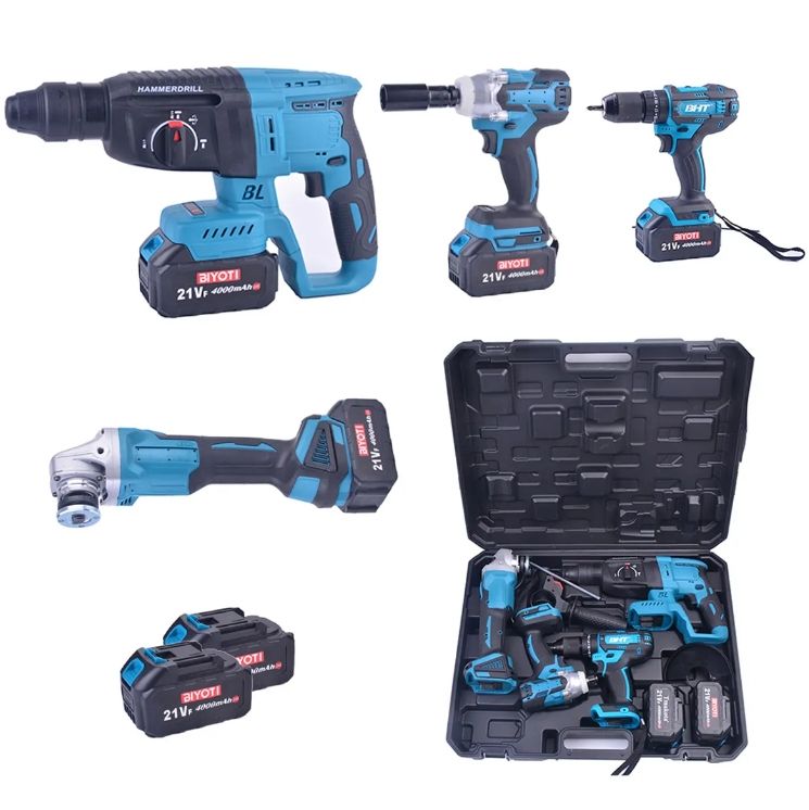 Kit de Herramientas Eléctricas Inalámbricas Profesionales, Taladro de 13 mm, Cepillo para Taladro, Taladro de Percusión con Dos Baterías