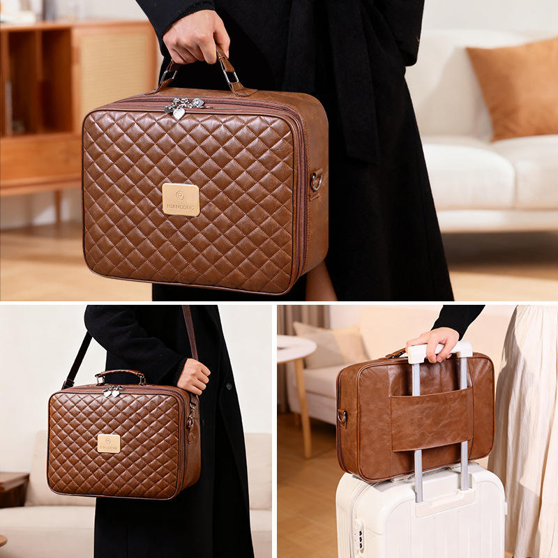 Estuche de maquillaje de doble capa con espejo LED y divisores ajustables para almacenamiento de cosméticos