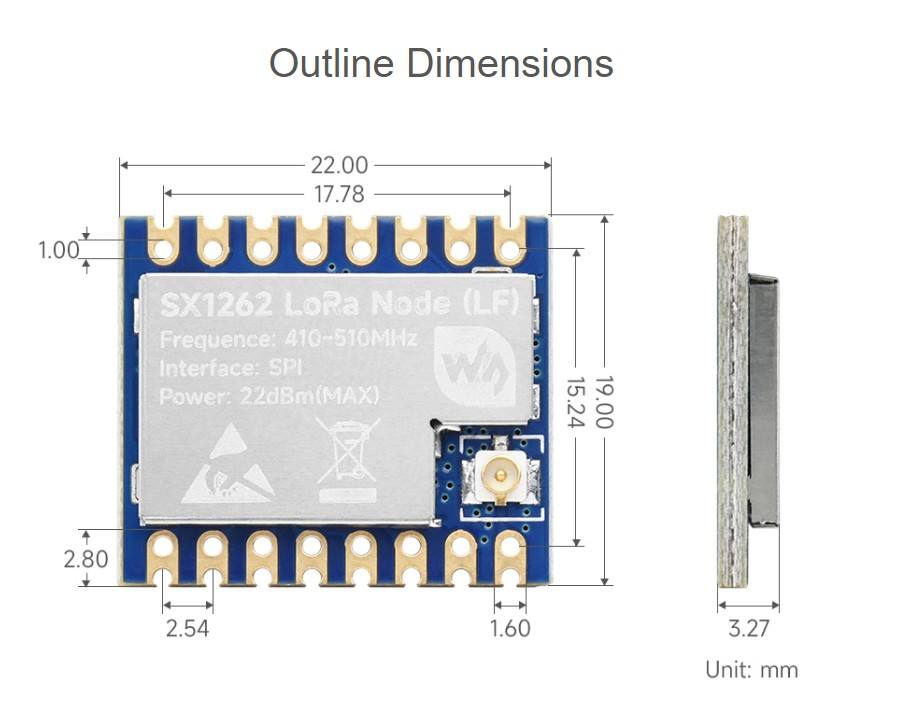 Módulo Core1262 LF/HF LoRa, Chip SX1262, comunicación de largo alcance, antiinterferencia, adecuado para banda sub-GHz