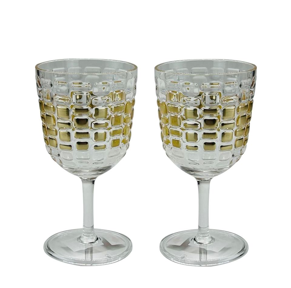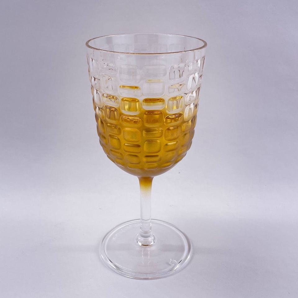 Copa de vino acrílica de color dorado con diseño de maíz