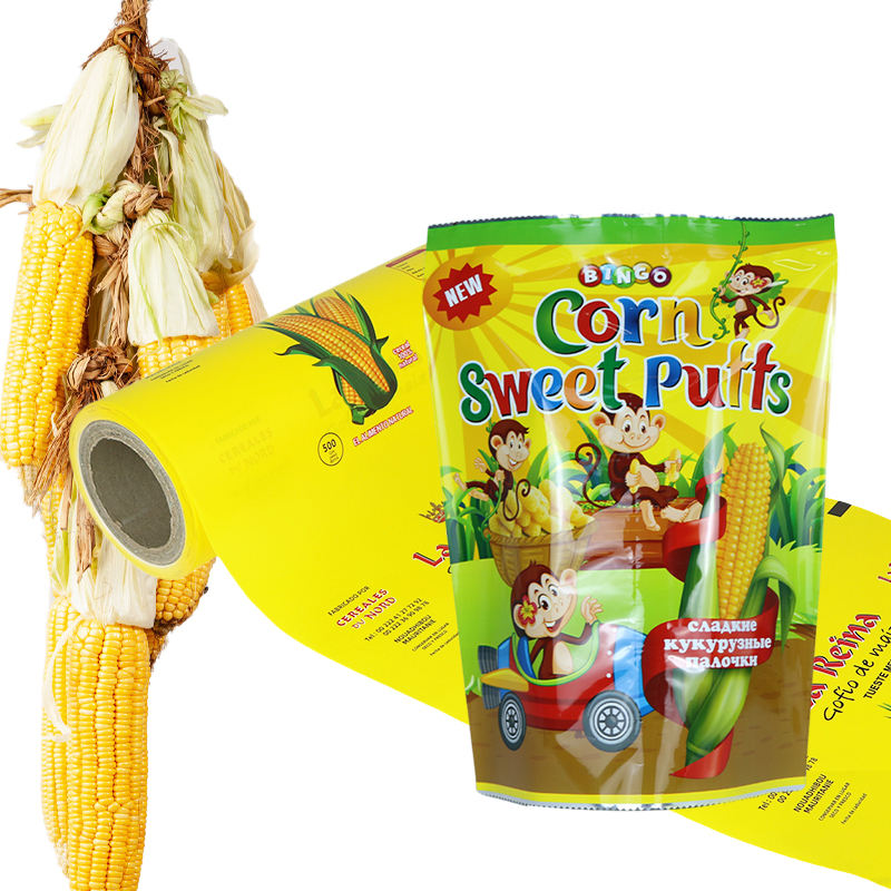Bolsas de embalaje de maíz, logotipo personalizado, papel de aluminio de grado alimenticio, Flexible bolsita, sellado trasero, embalaje de maíz, rollo de película plástica para alimentos