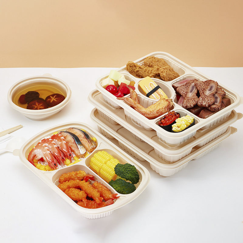 Cajas de almuerzo de maíz biodegradable, contenedores de alimentos desechables respetuosos con el medio ambiente