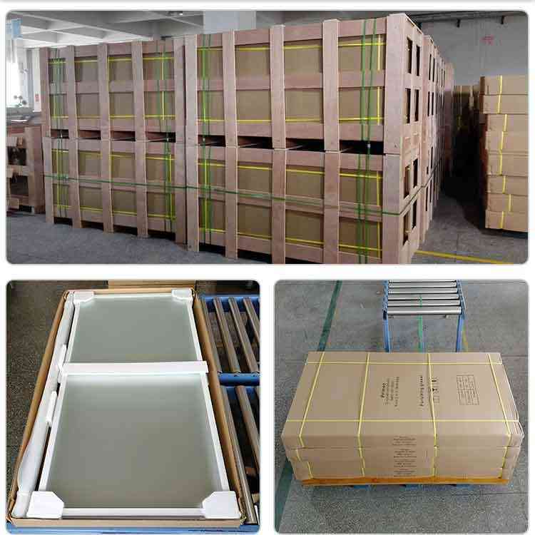 Cuarto de ducha embalado con cartones de exportación estándar con espuma y algodón perlado dentro y fuera con la descripción del producto.