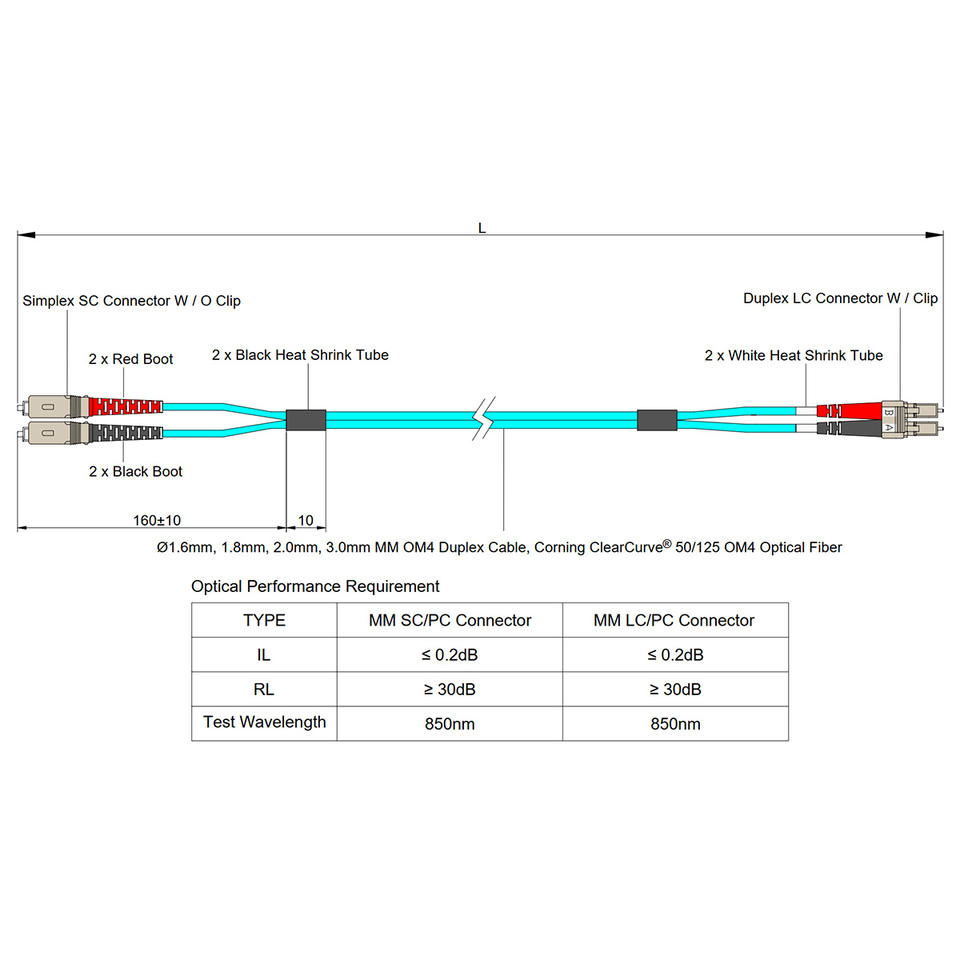 Cable de Fibra Óptica Multimodo Corning Clear Curve OM4 de 3.5 Metros, Dúplex SC/LC, Cubierta Aqua Boots, Revestimiento OFNR, Compatible con ITU, 2 Conductores de Datos