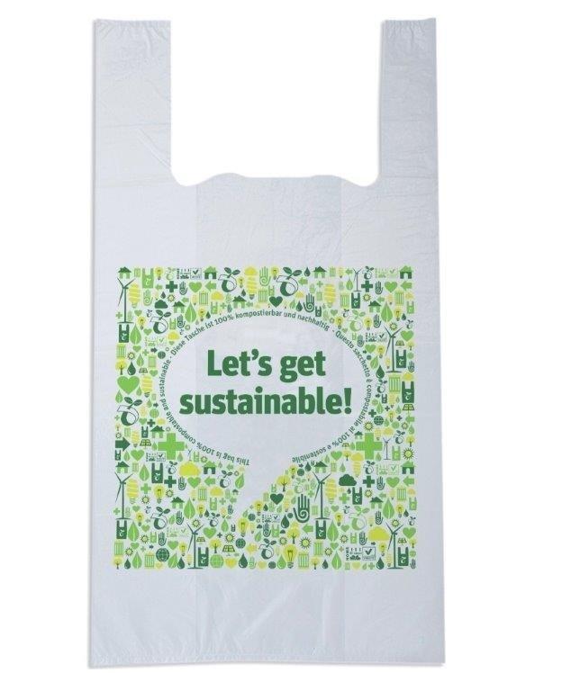Bolsa de plástico para camiseta con logotipo impreso personalizado compostable biodegradable a base de almidón de maíz 100%