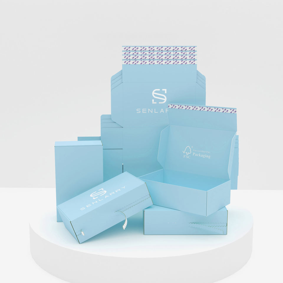Embalaje de papel de cartón corrugado, tira de desgarro impresa, envío de correo autosellado, caja de regalo con logotipo personalizado