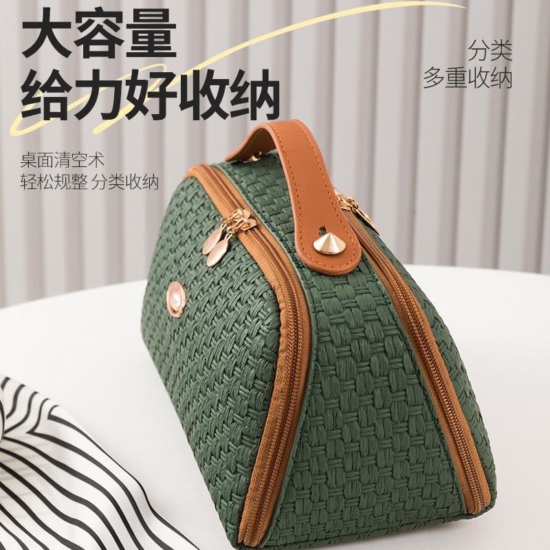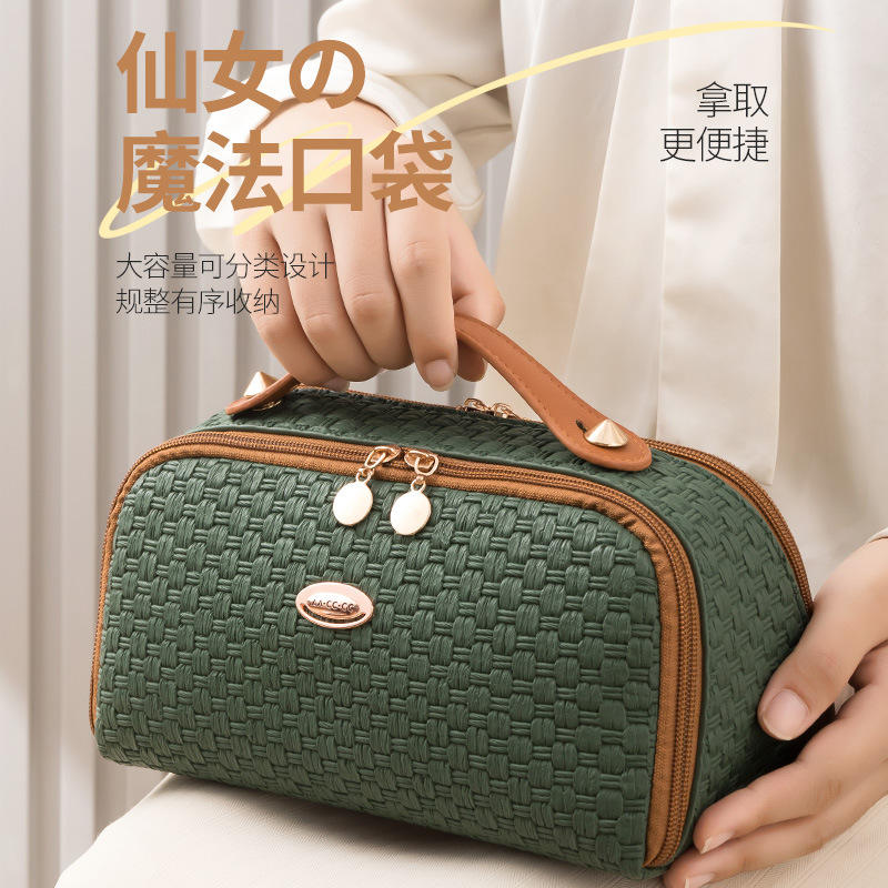 Bolsa de Cosméticos de Gran Capacidad, Impermeable, con Doble Abertura, Boca Ancha, para Viaje, con Asa Suave
