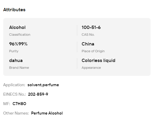 Otros Nombres:Alcohol para Perfumes