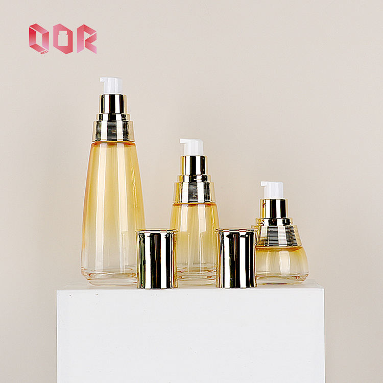 Envases Cosméticos de Lujo, Frascos Redondos de Vidrio para Tónico, Loción y Sérum, Juego de Envases con Bomba Dosificadora de Vidrio