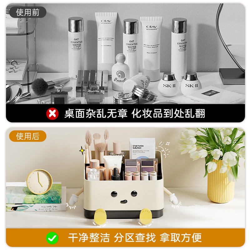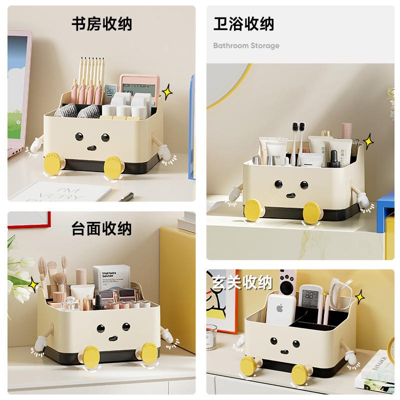 Caja de almacenamiento de cosméticos, organizador de escritorio de plástico para maquillaje, cuidado de la piel, escritorio de baño, dormitorio de estudiantes con ruedas