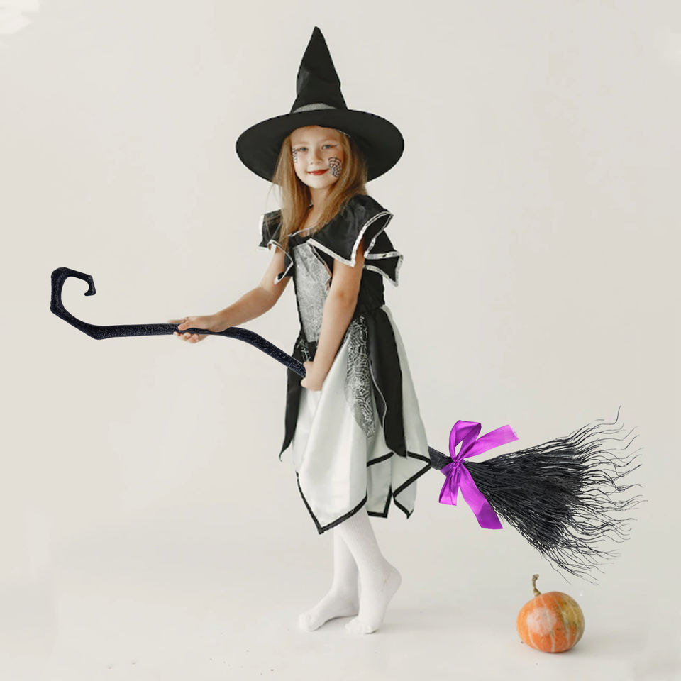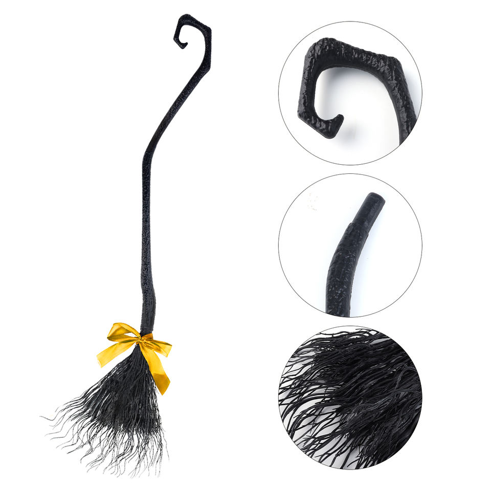 Cosplay fiesta bruja decoraciones mago volador malvado escoba accesorios Halloween bruja escoba con cintas