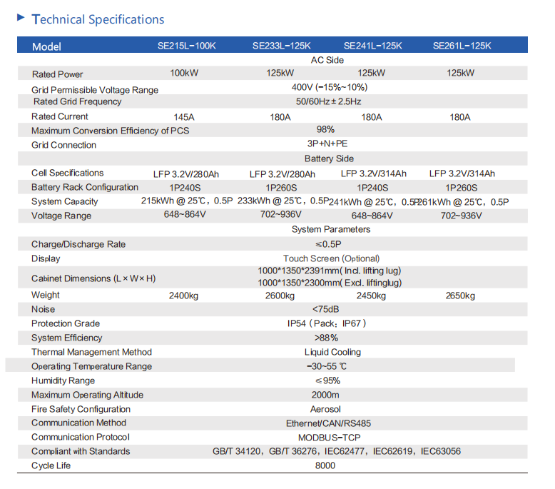 100 kWh/215 kWh/1 MWh/2 MWh/3 MWh/10 MWh