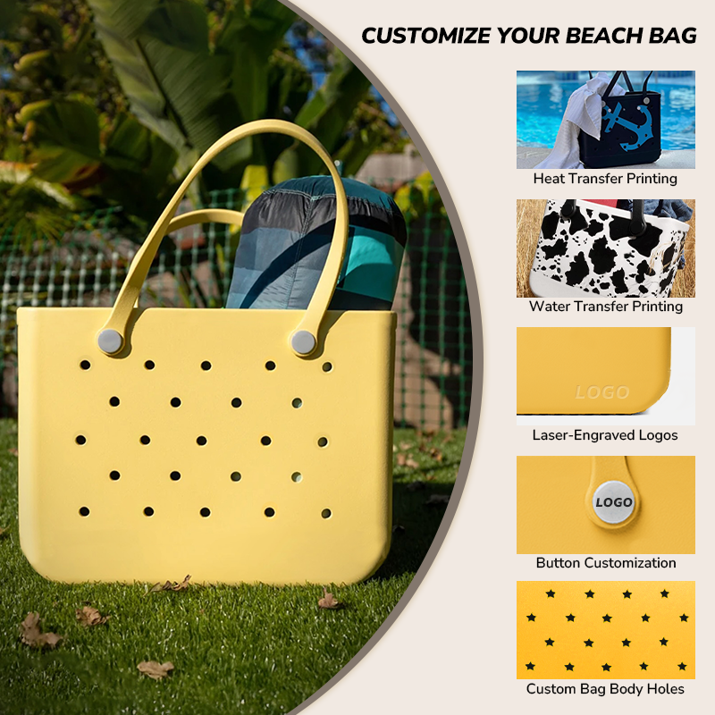 Bolsa de Mano EVA de Gran Capacidad con Logotipo Personalizado, Bolsa de Playa Impermeable de Color Sólido a la Moda, con Parte Trasera Abierta, Novedosa y Útil
