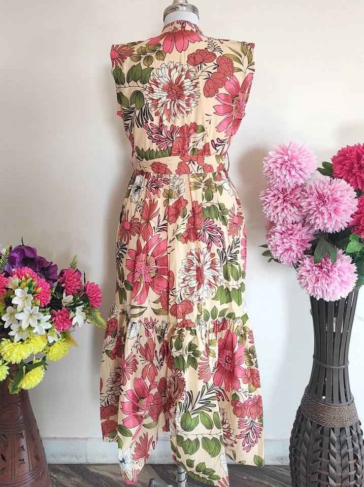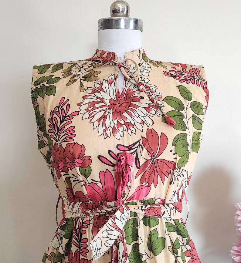 Vestido Corto Estampado de Algodón para Playa, Vestido Midi Estampado a Mano, Estilo Bohemio Informal, Atuendo Ligero para Vacaciones de Verano