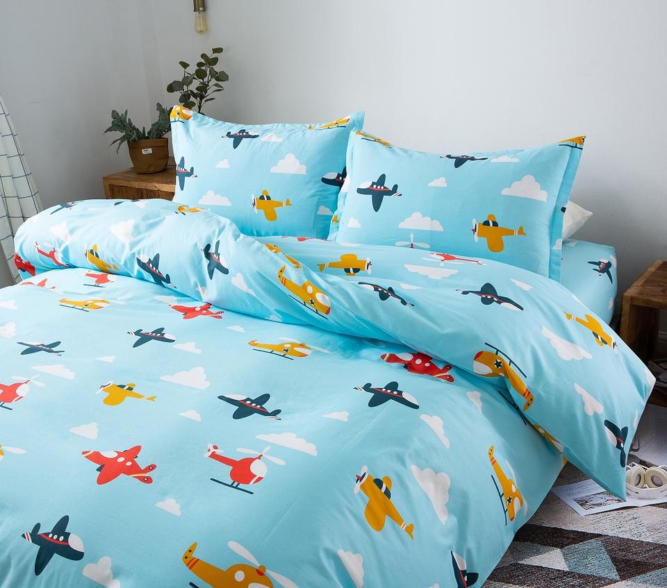 Juegos de cama de algodón con estampado geométrico, edredón para niños, edredón barato, funda de lino y sábanas, juego de cama de dibujos animados para niños