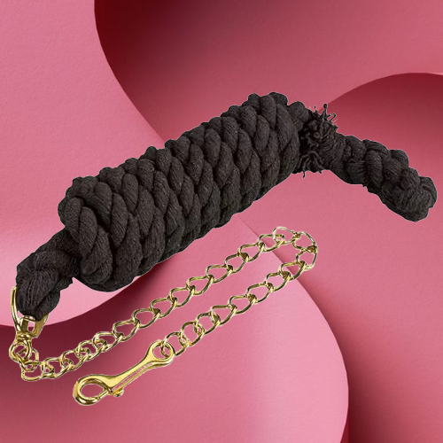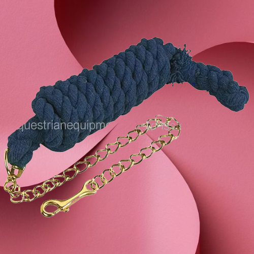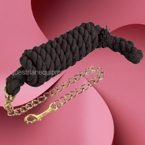Productos para caballos con logotipo personalizado de alta calidad, cadena de cuerda de plomo de caballo negro de cuero de acero inoxidable duradero para entrenamiento deportivo de equitación