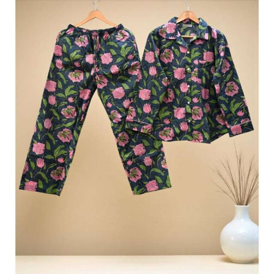 Conjunto de pijama con estampado de bloques de algodón Diseño indio tradicional con algodón suave y transpirable, comodidad y estilo en casa.