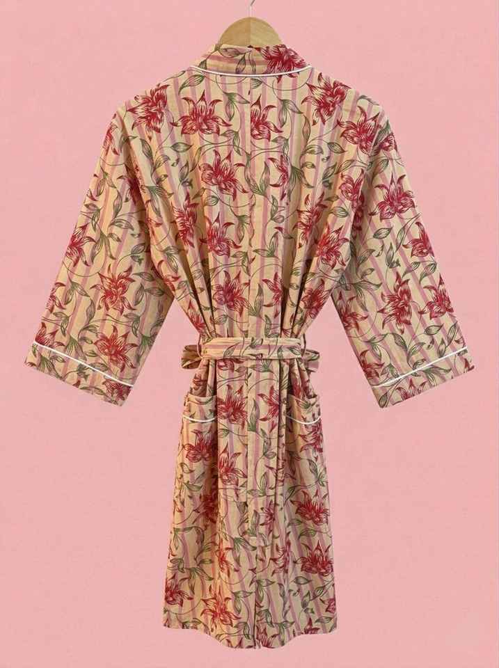 Kimono de Algodón Transpirable y Ecológico, Bata de Playa, Bata de Baño, Kimono Estampado a Mano de la India al por Mayor, Kimono para Mujer