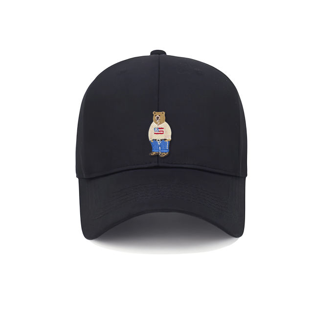 Gorro de algodón con parche de hierro de oso de peluche en beige