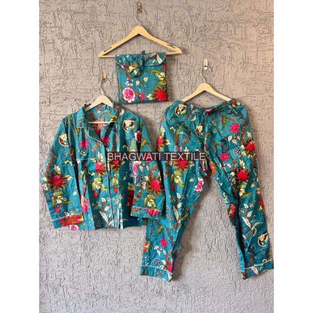 Conjunto de pijama de algodón con estampado Floral para mujer, conjunto de ropa de descanso ligera, pijama con estampado de bloques a mano, conjunto de traje de noche para mujer