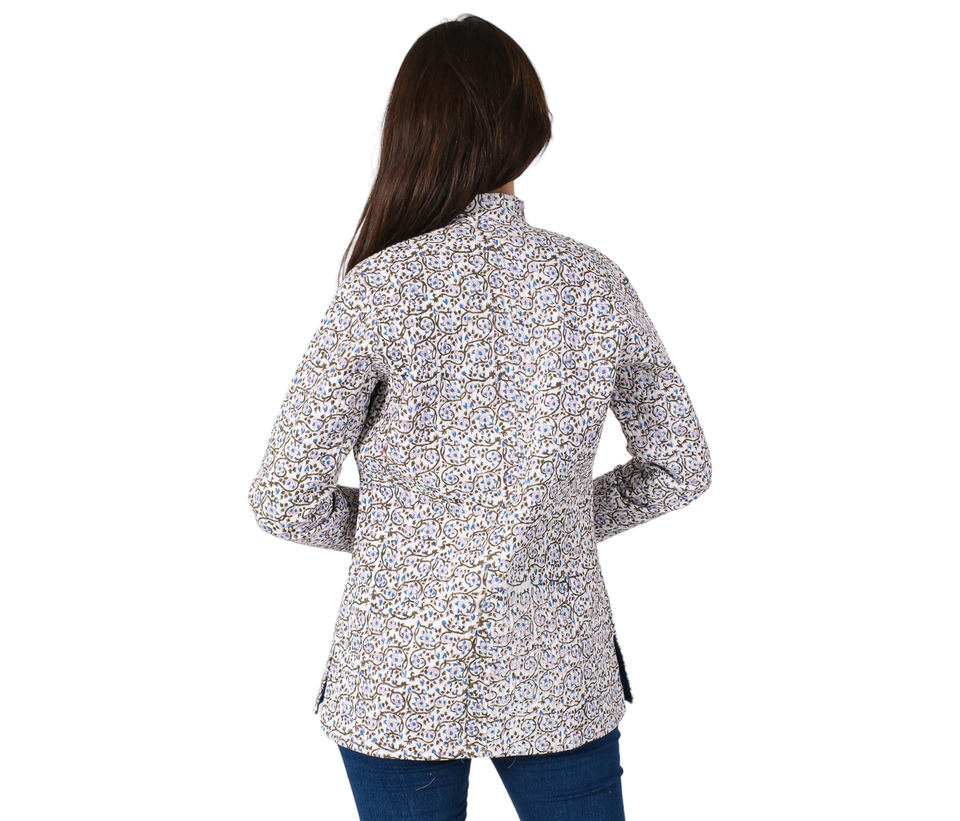 Chaqueta acolchada con estampado de bloques a mano de algodón, nueva moda para mujer, chaqueta de manga larga con cierre de botones estampados de algodón para Otoño e Invierno