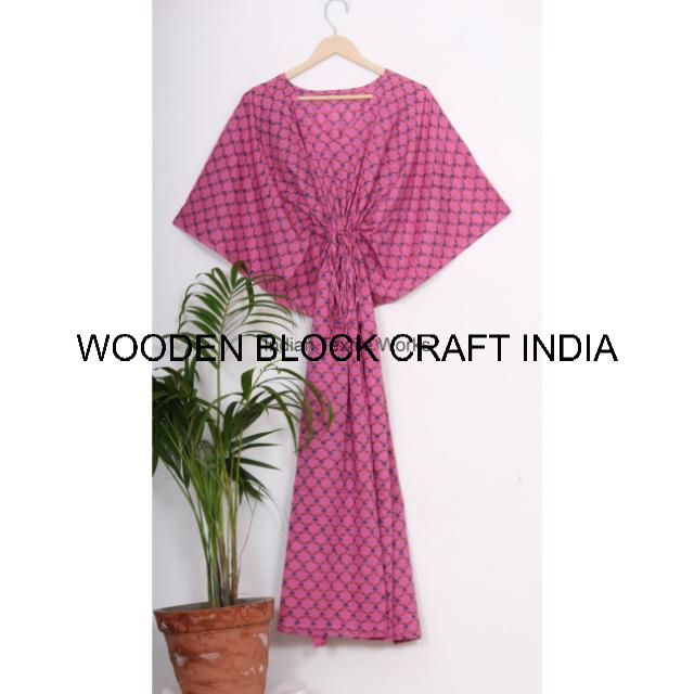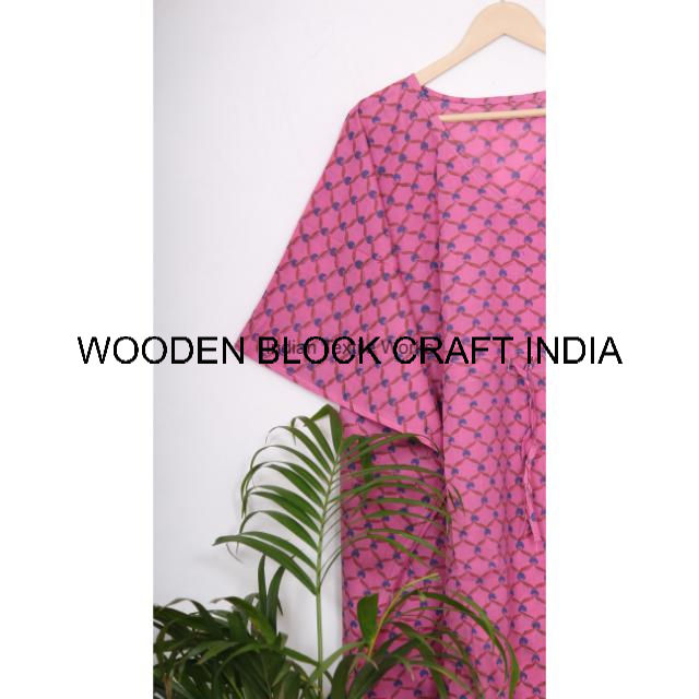 Vestido Kaftan Maxi de Algodón para Mujer, Color Rosa Maternidad, Logotipo Sostenible, Informal, Hecho a Mano, Holgado, Estilo Indio, para Fiestas de Verano