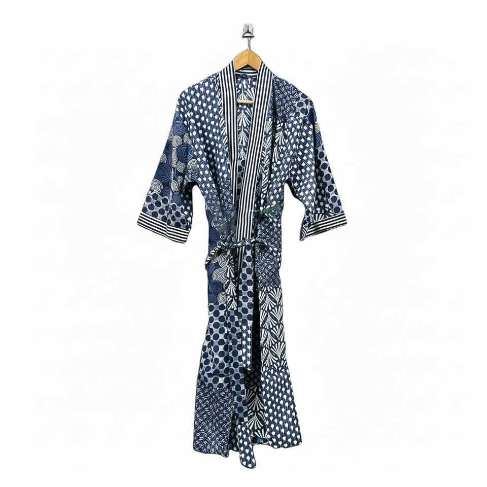 Kimono de dama de honor con estampado de bloques de algodón, bata de mujer de talla única para la temporada de primavera y verano