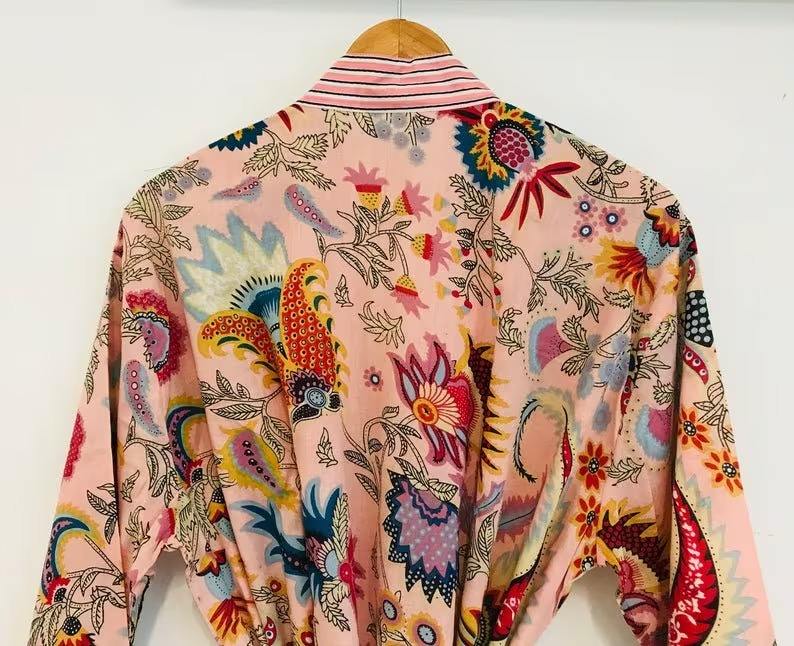 Bata Kimono de algodón, bata de dama de honor con estampado de bloques, ropa de dormir de verano, talla única