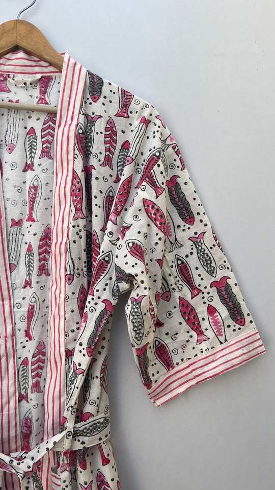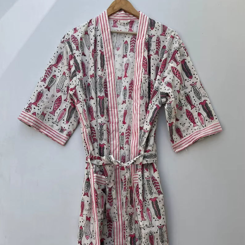 Bata Kimono de Algodón con Estampado Artesanal, Túnica Larga de Playa, Manga Larga, Ligera, para Descansar, Primavera Verano, Secado Rápido, Cuello en V