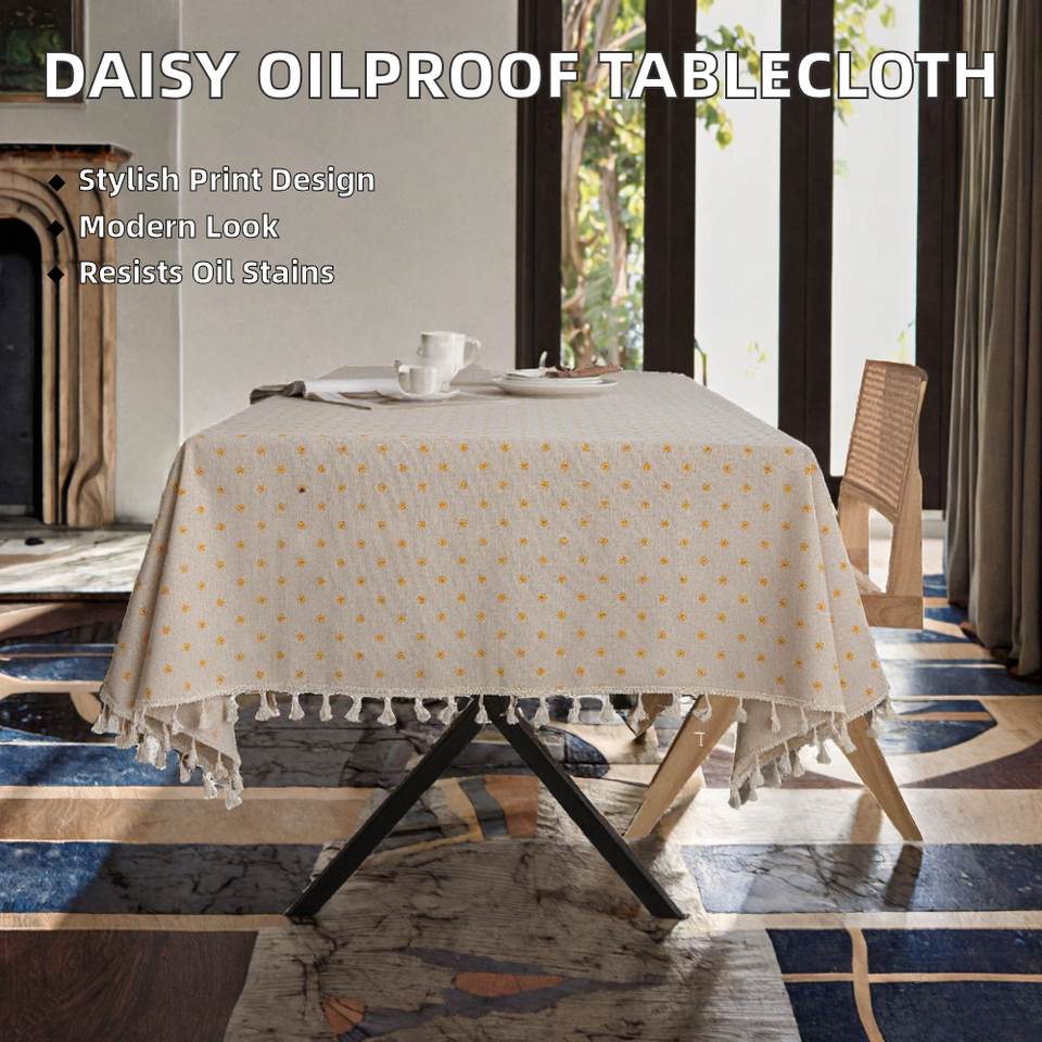 Mantel Rectangular de Mezcla de Algodón y Lino con Estampado de Margaritas, Personalizado, Resistente a las Manchas, para Mesa de Centro, Cubierta para Mesa de Hogar, OEM