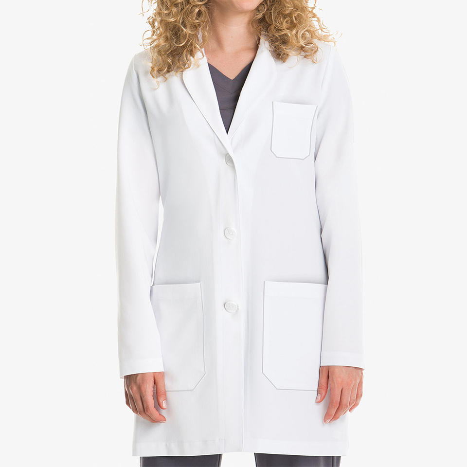 Material de algodón Multi-Bolsillos Uniforme de médico de manga larga Abrigo blanco médico personalizado para mujeres