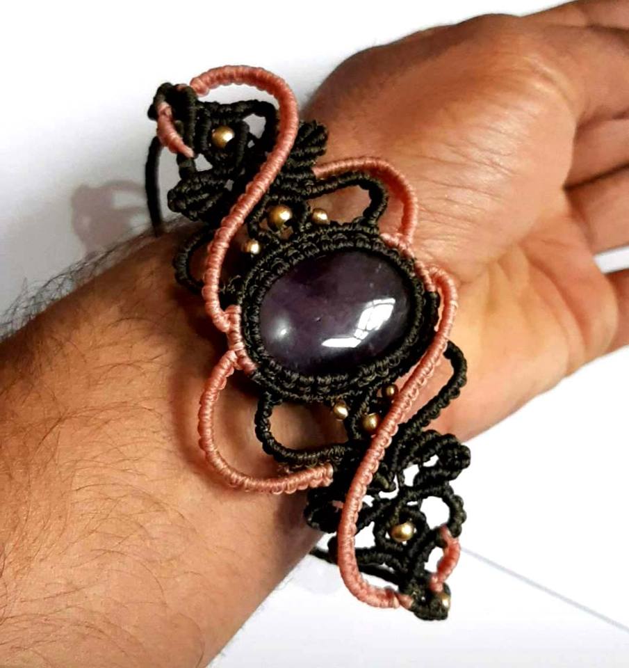 Nombre del producto:Pulsera de Macrame de Cuarzo Rosa