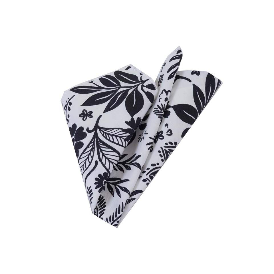 Pañuelo de algodón con estampado floral negro sobre blanco